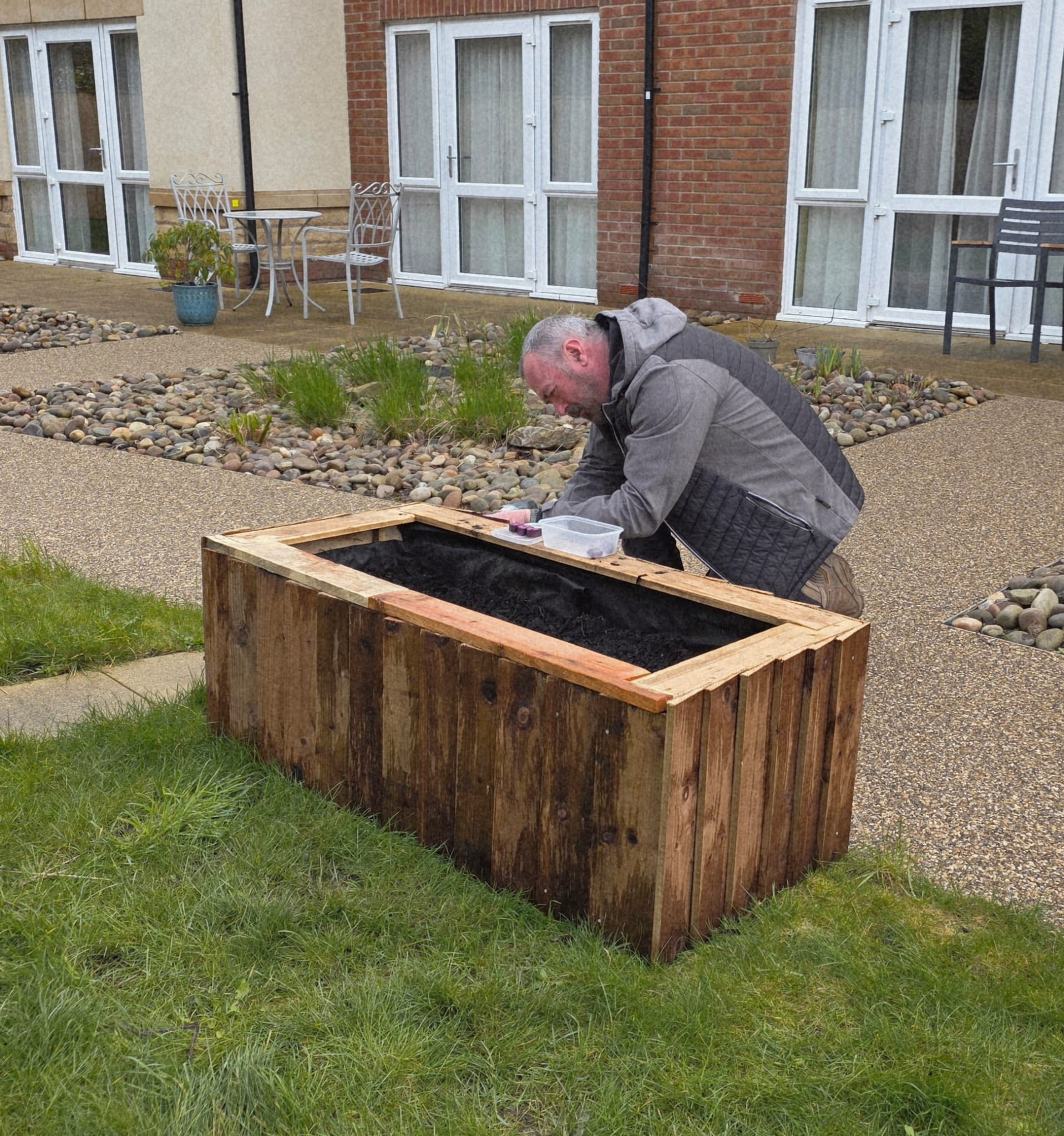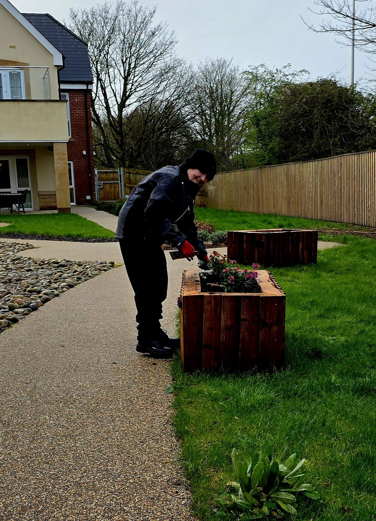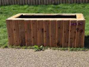 An exciting new development here at Glenburnie is the creation of individual raised beds. The beds are for our ladies and gents to ‘adopt’ and they have the expertise of Suzanne, our gardener, to plant their choice of flowers or vegetables. They are further personalised by the addition of the ladies and gents’ name, which have been handmade by Tim, our Maintenance Manager.