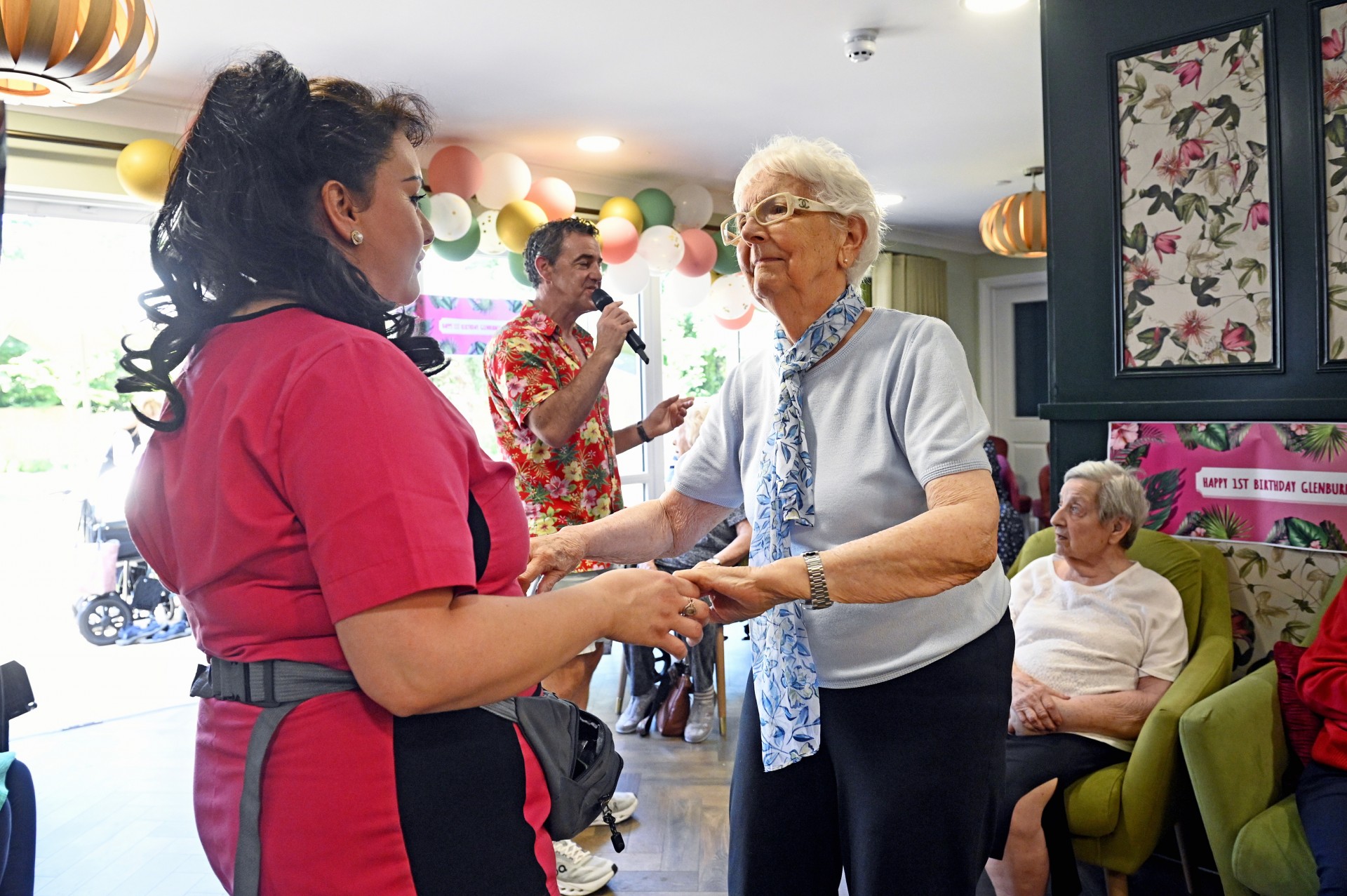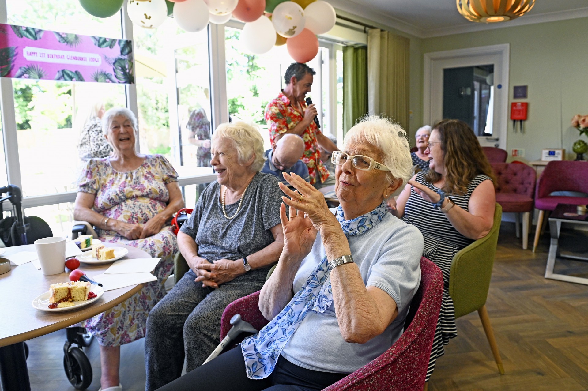 Date of news/blog: 29th June 2025Happy birthday to us. We celebrated the first anniversary of Glenburnie Lodge in style with a day of fun events including live entertainment from several different artists and a lovely party tea and cake prepared by our amazing catering team. It was lovely to see our ladies and gentlemen, their families and staff enjoying themselves – one year, where has that time gone!