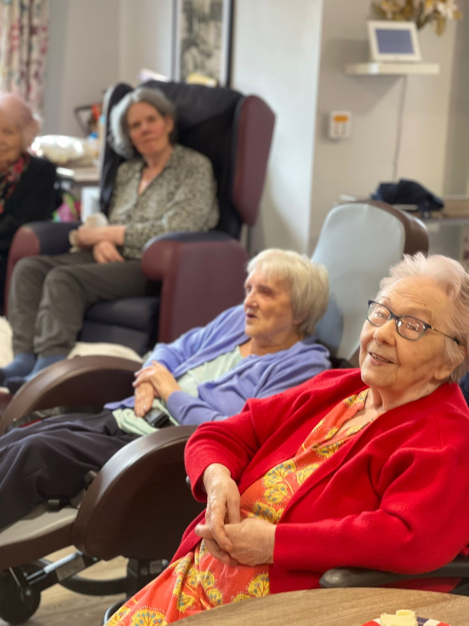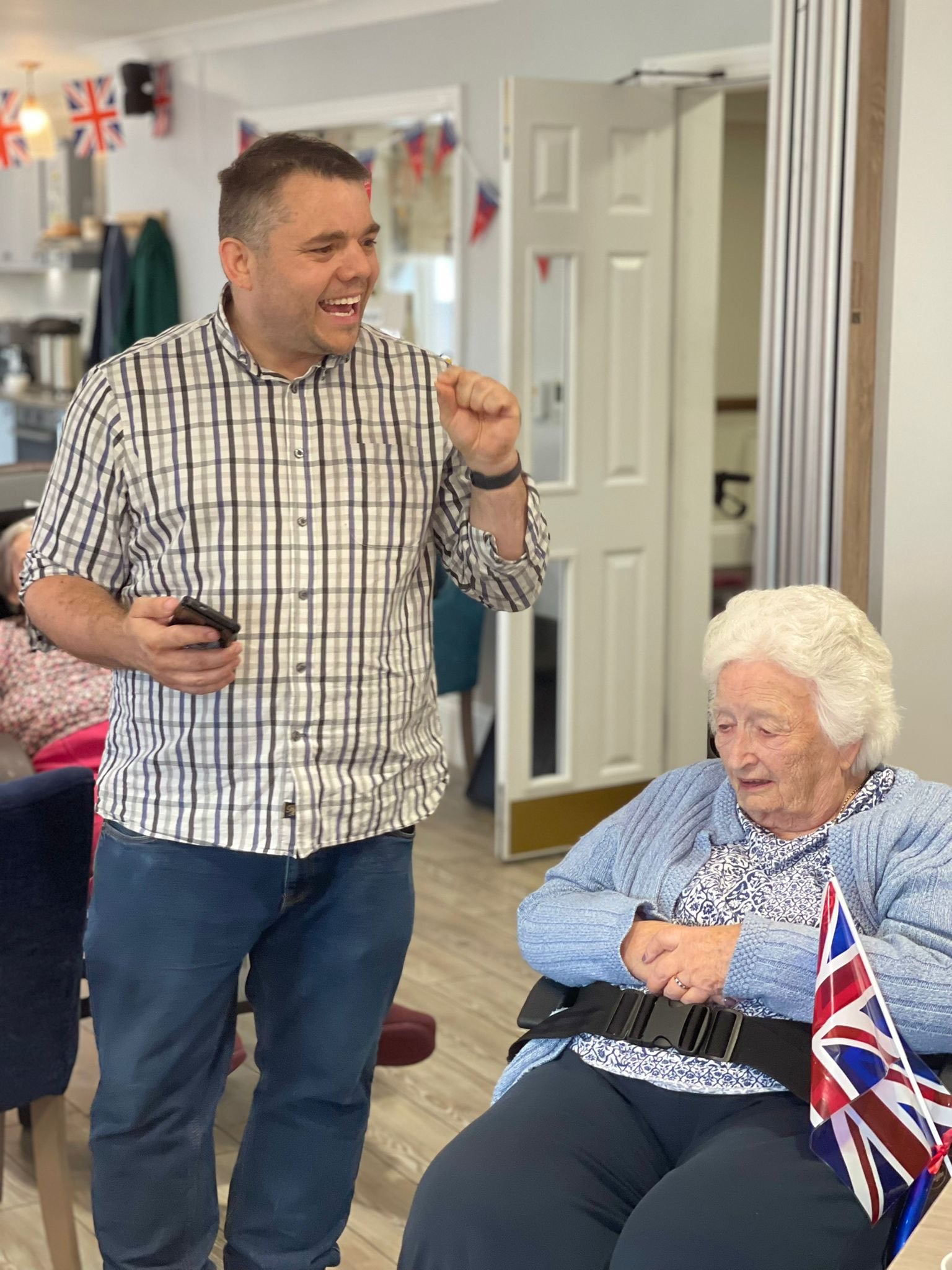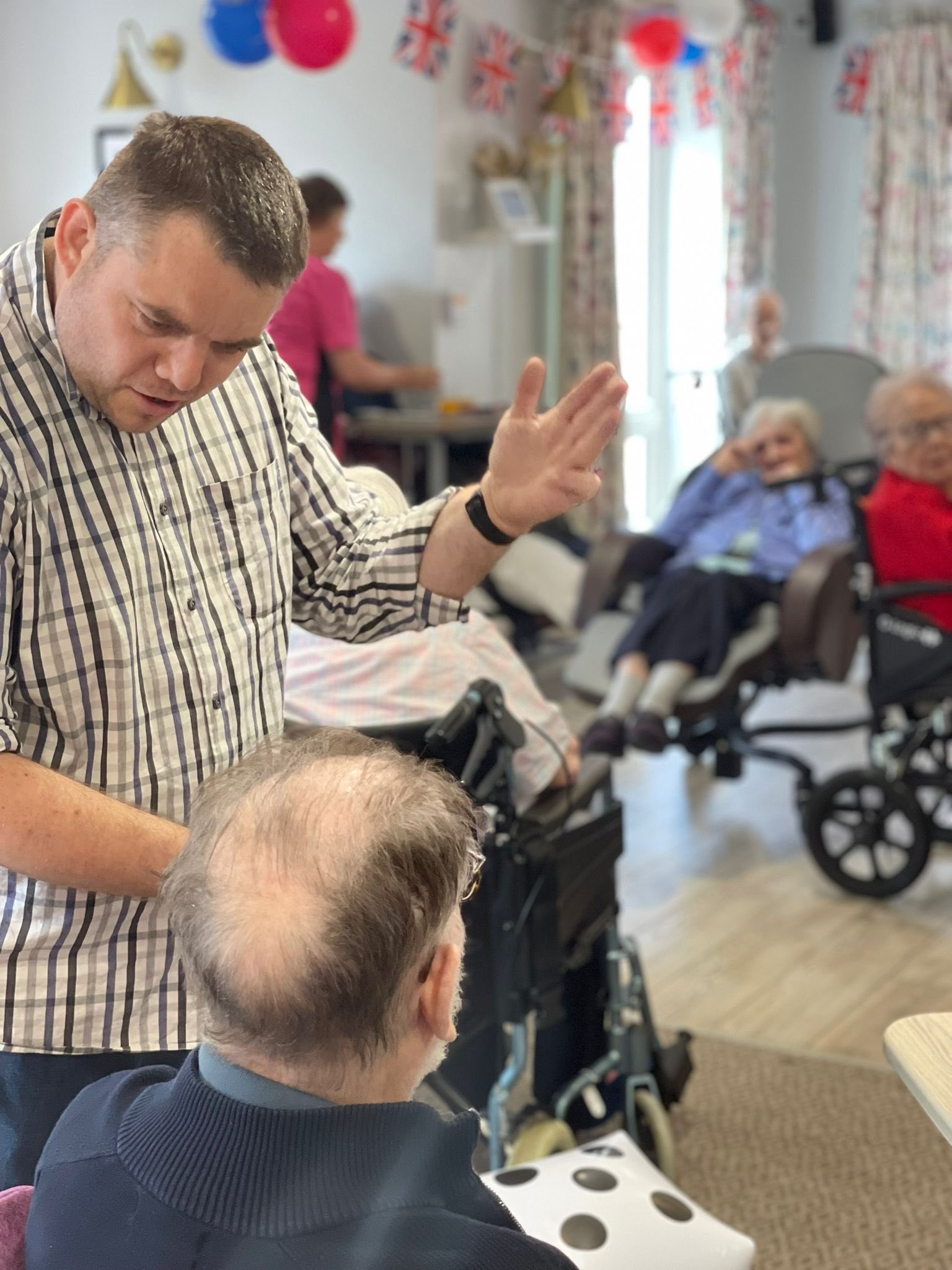 Date of news/blog: 22nd May 2025Our VE Day 80th anniversary celebrations brought back memories for our ladies and gentlemen in more ways than one. Alex the Memory Man visited on the day to run a reminiscence session on our Mortimer floor and we celebrated as a home by having a concert performed by vintage singer Daisy Belle who sand a melody of wartime songs. It was a really lovely day.