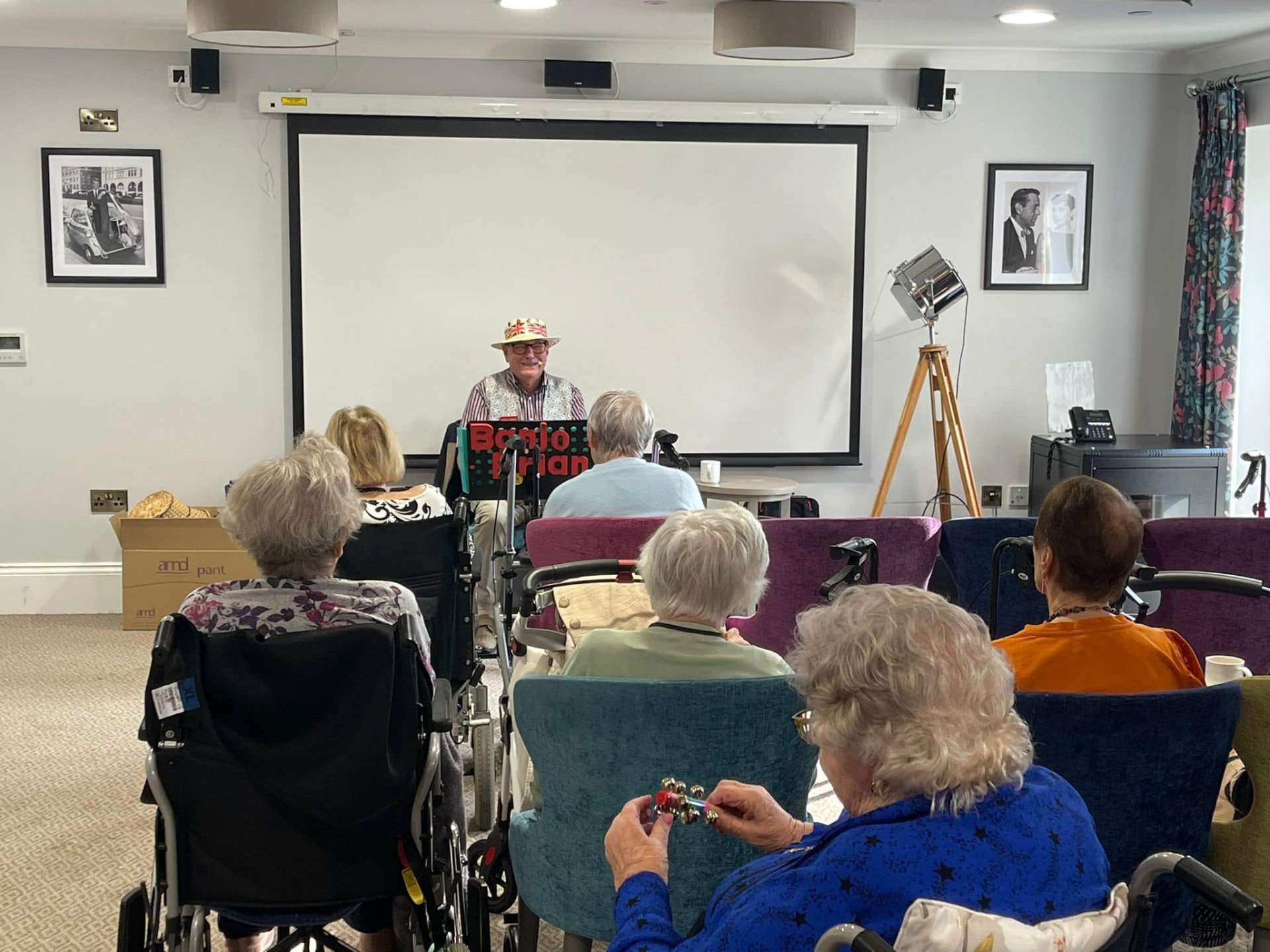 Date of news/blog: 10th October 2024One of the many entertainers who visit Brockington House Care Community on a regular basis is Banjo Brian. He never fails to please our ladies and gentlemen with his singing and instrument playing and he also encourages everyone to pick up an instrument themselves and sing-a-long to class tunes from yesteryear. It’s certainly music to the ears!